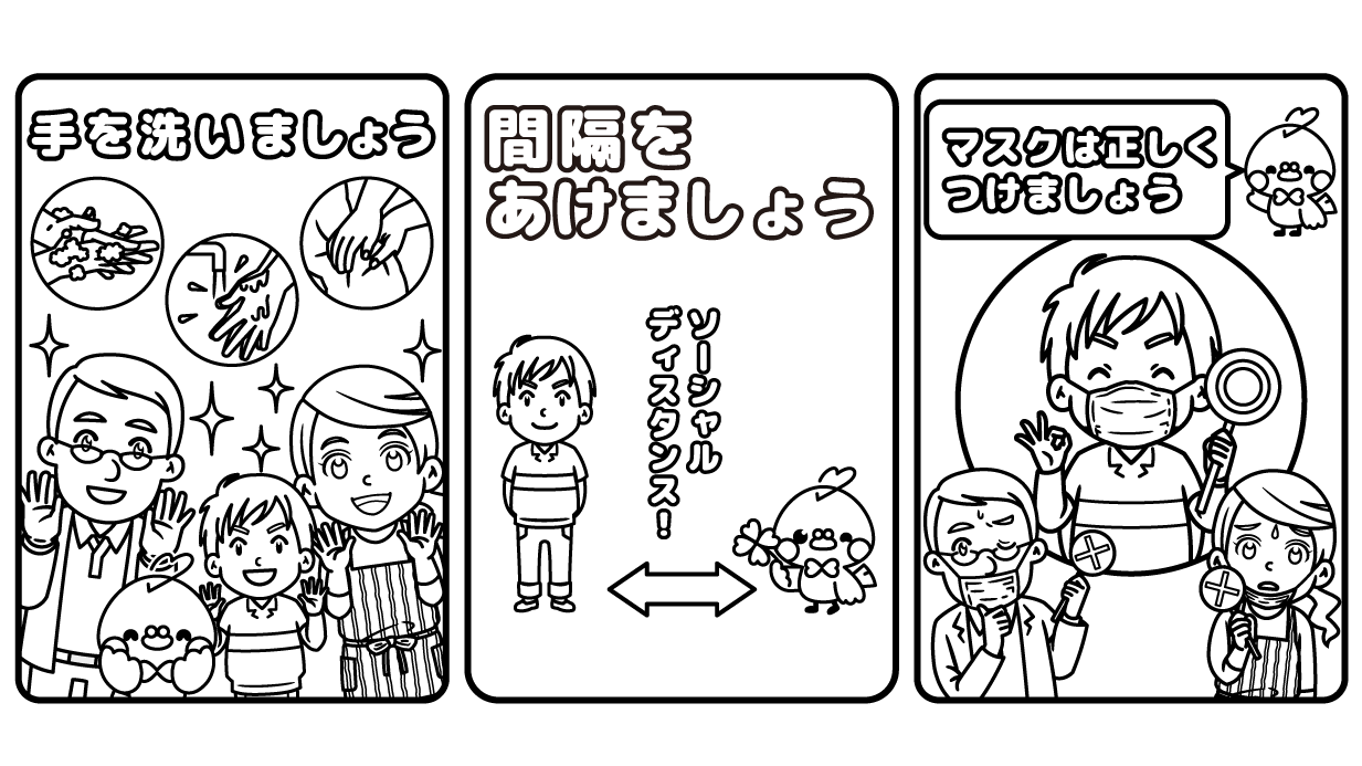 新型コロナウイルスに感染すると重症化しやすい高齢者にとっては、感染予防が大切です。高齢者が集まる老人ホームやデイサービスは、まさに対策が必要とされる場所。ご利用者に楽しくコロナ対策を意識してもらうために、コロナ対策ポスターの塗り絵はいかがでしょうか? 完成した塗り絵はそのままポスターとして使えます。