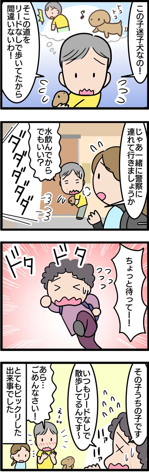 そんな方ですから、リードをしていない犬を見て「迷子犬だ!」と思い込んでしまったのでしょう。